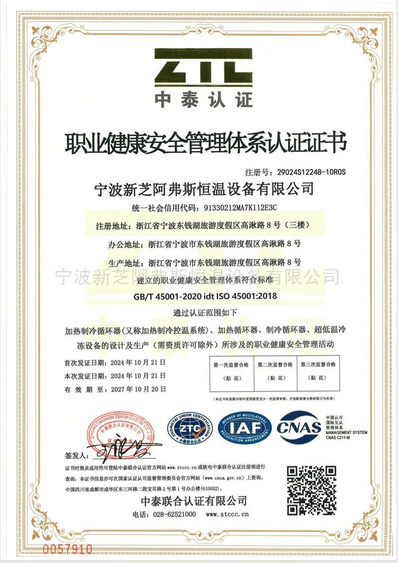 我的位置:首页  >  荣誉资质  >  职业健康安全管理体系认证证书